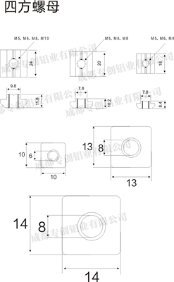 四方螺母安裝時(shí)需預(yù)塞至鋁型材槽內(nèi),用于在型材上連接各種配件。